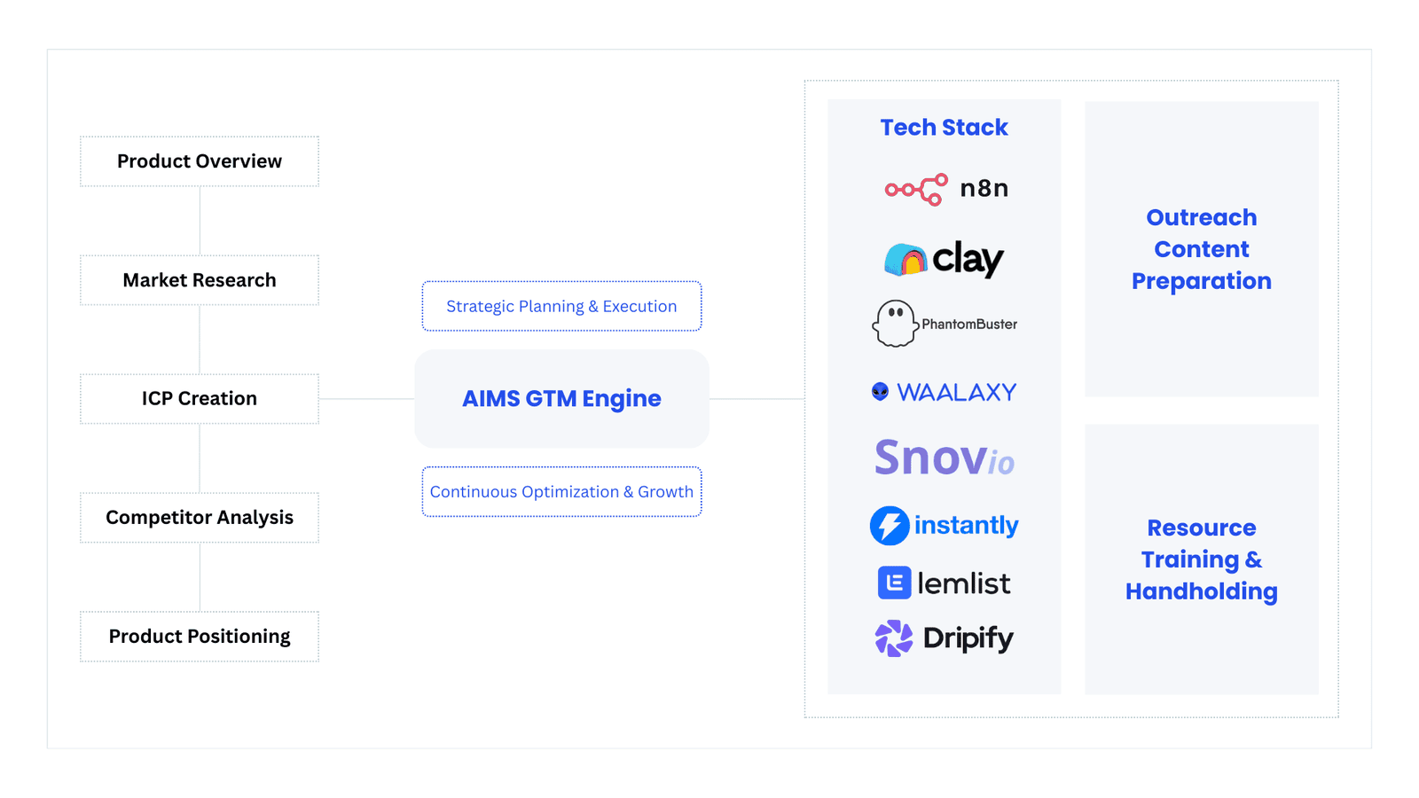 Whether you're a tech founder building your first product or an enterprise modernizing your sales function, your Go-To-Market strategy is the foundation of your growth. At AIMS, we help you transform your product vision into a predictable, scalable, and data-backed market entry strategy.